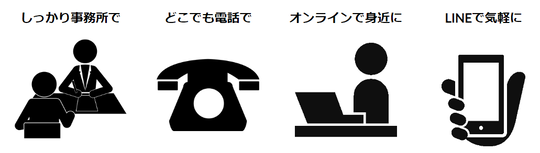 オリオン法律事務所では、ご都合に合わせて4種類の相談方法をお選びいただけます。